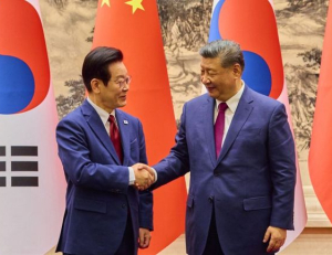 이재명 대통령은 5일 중국 베이징 인민대회당에서 시진핑과 정상회담을 갖고 한중 관계 전면 복원과 민생·평화 중심의 협력 확대, 서해와 한반도 정세 관리 방안을 논의했다고 위성락이 브리핑했다. 체결식에서 악수하고 있다. 위 실장은 이날 브리핑에서 대통령이 오후 4시30분부터 8시38분까지 공식 환영식, 정상회담, 양해각서(MOU) 서...