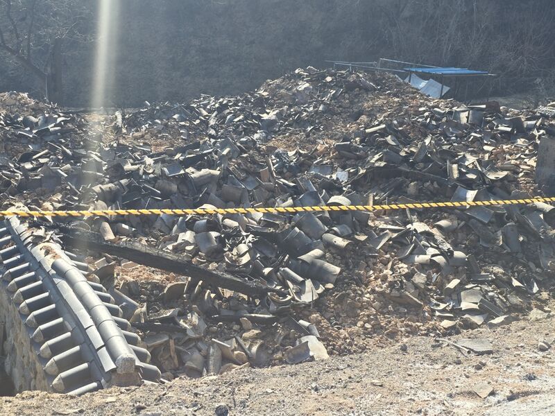 경상북도 민속문화재 제155호 청송 기곡재사가 불에 타 폐허가 된 모습.