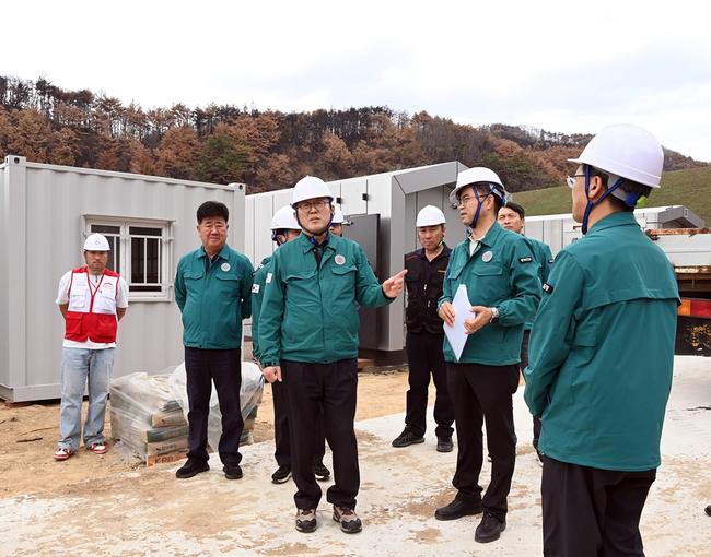 이한경 행정안전부 재난안전관리본부장이 지난 18일 오후 경북 영양군에 마련된 산불피해 주민들을 위한 임시주거시설 현장을 점검하고 있다.