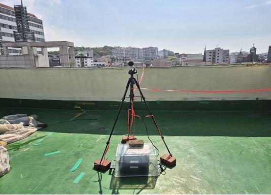 ▲서울시 양천구가 이동형 항공기 소음 측정 장비로 소음측정 중인 모습.