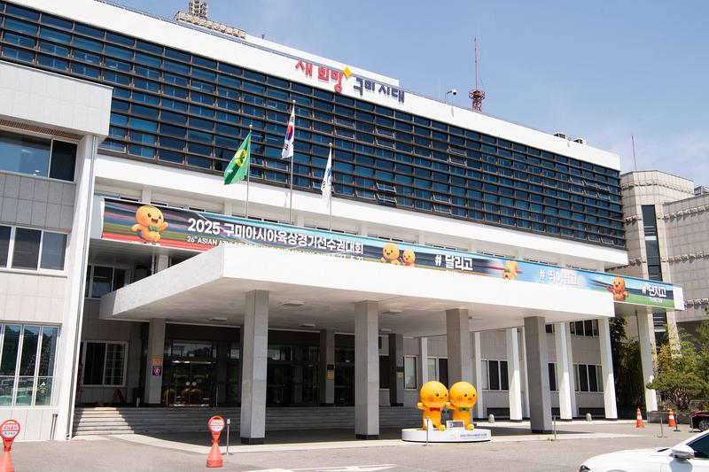 경북 구미시는 2025 구미아시아육상경기선수권대회를 알리는 대형 현수막이 구미시청에 설치됐다고 4일 밝혔다.