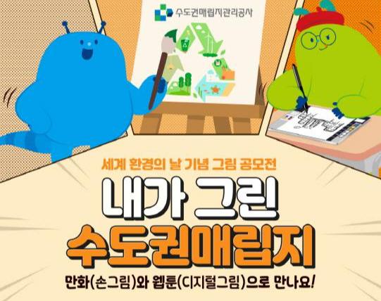 수도권매립지관리공사(사장 송병억)는 오는 6월 5일 세계환경의날을 기념해 대국민 웹툰·만화 공모전 ‘내가 그린 수도권매립지’를 개최한다. 이번 공모전은 수도권매립지와 관련된 다양한 환경 이슈를 창의적인 콘텐츠로 표현함으로써, 환경기초시설에 대한 긍정적 인식을 확산하는 데 목적이 있다.