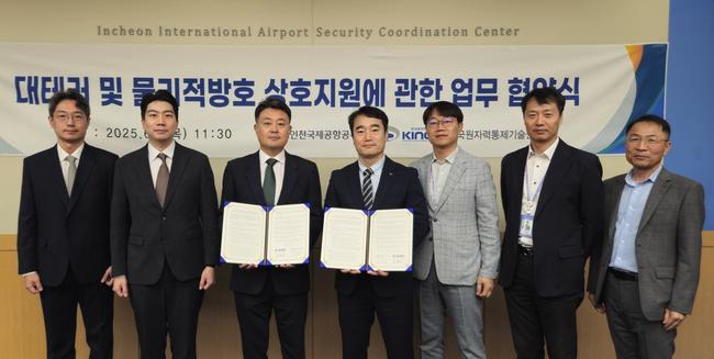 인천국제공항공사(사장 이학재)는 5일 공사 출입국대책반에서 한국원자력통제기술원(원장 이나영)과 `공항시설 불법방해 행위 및 원자력시설 위협 대응을 위한 대테러 및 물리적 방호 상호지원에 관한 업무협약`을 체결했다고 밝혔다.