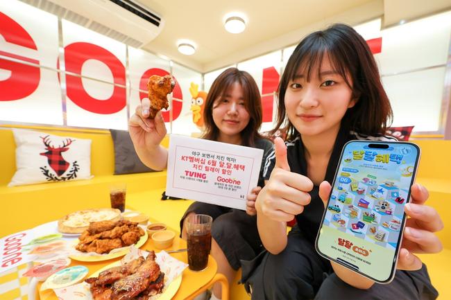 KT는 인터넷 가입자 1천만 명 돌파를 기념해 `치킨 릴레이 프로모션`을 선보인다. KT멤버십 고객은 6월 13일부터 24일까지 `쿠팡이츠X호식이두마리치킨 7천원(1만8천원 이상 배달 주문 시)`, 25일부터 30일까지는 `굽네치킨 6천원(1만 8천원 이상 주문 시)` 할인 혜택을 받을 수 있다. 여기에 KBO 리그와 함께 즐길 수 있도록 `티빙 스탠다드 1개월 할인`도 마련했다.
