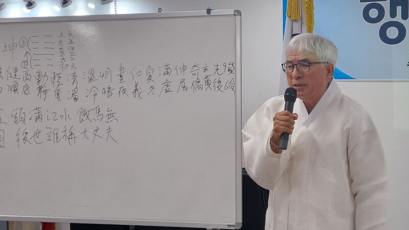권오춘 전통문화연구회 부이사장(박약회 이사)이 10일 사단법인 박약회(회장 김종길) 7월 행복아카데미 특강에서 '주역(周易) 24괘(卦)중 15번째 지산겸(地山謙)'에 대해 2시간 동안 열정적인 강의를 했다.