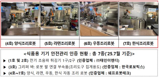 • 양식·한식·라면·우동 자동 조리로봇 포함 총 7종 인증 완료
