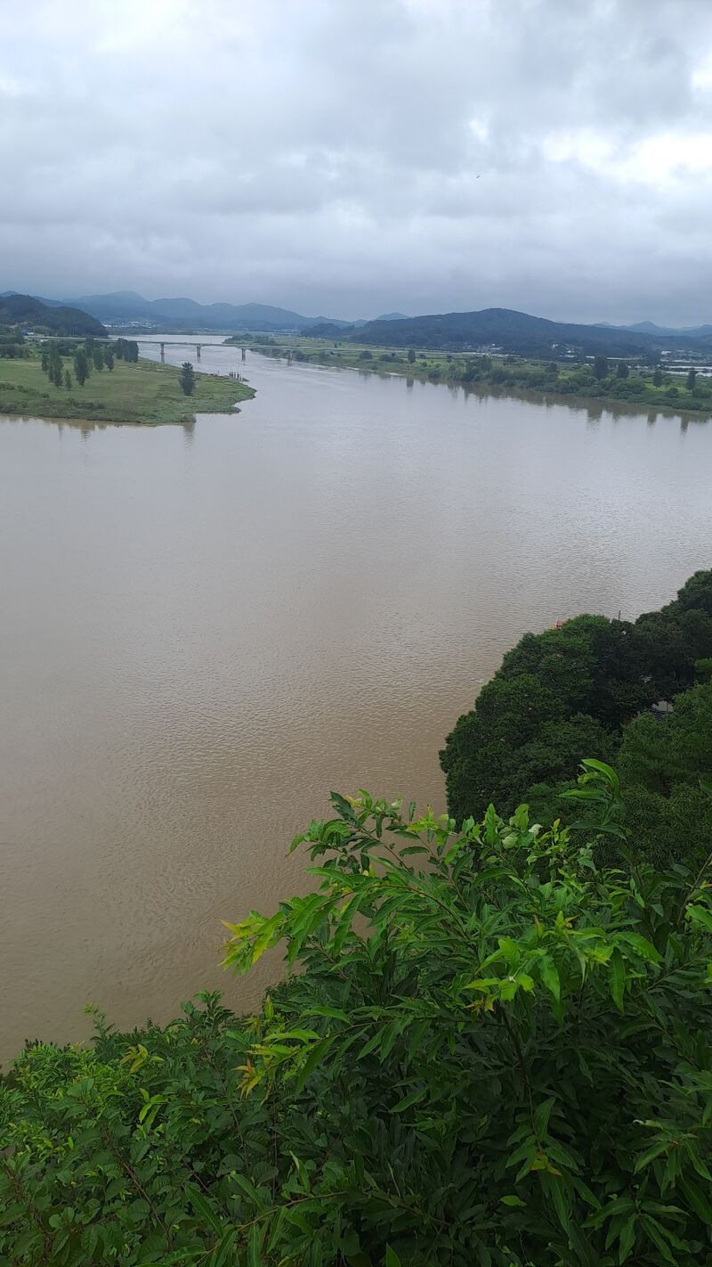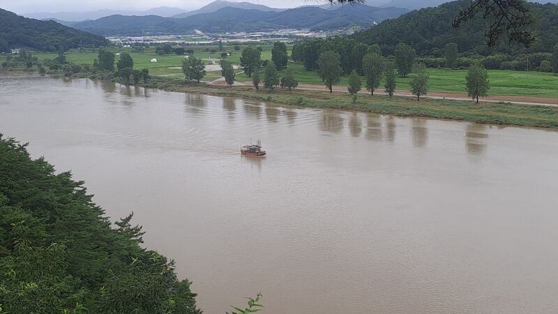 지난 7월 19일 오후 4시 께 집중 폭우로 수량이 불어난 백마강(금강) 위에 유람선이 홀로 떠 있다.