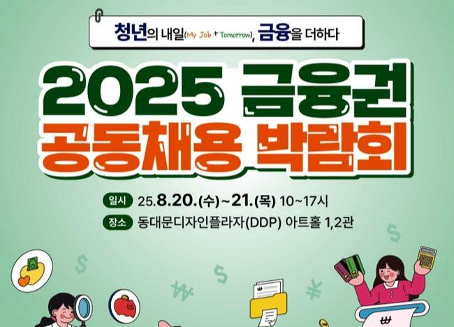 청년 구직자와 금융기관을 연결하는 국내 최대 금융 취업 행사 ‘2025 금융권 공동채용 박람회’가 8월 20일부터 서울 동대문디자인플라자에서 열린다.