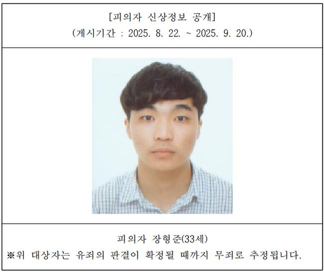 울산지검은 이날 신상정보공개심의위원회를 열어 장씨의 이름, 나이, 얼굴을 공개하기로 결정했다고 밝혔다. 공개된 정보는 이날부터 30일간 울산지검 홈페이지에 게시된다.