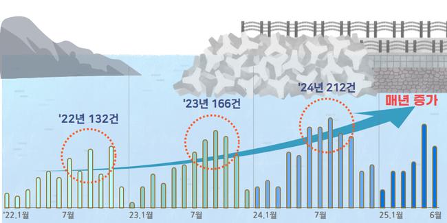 분석에 따르면 연안 안전 관련 민원은 2022년 132건에서 2024년 212건으로 1.6배 증가했으며, 연평균 27.6%씩 늘었다. 접수 시기는 여름철 낚시와 조개잡이 활동이 활발한 89월에 정점을 찍고, 1011월까지 이어지는 패턴을 보였다.