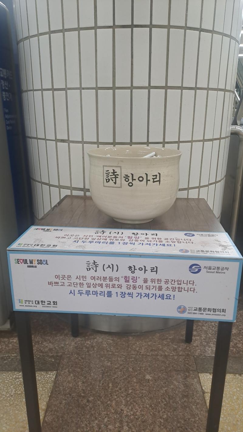 한편 ‘시 항아리’는 서울교통공사, 대한교회, 교통문화협의회가 함께 설치, 관리한다.