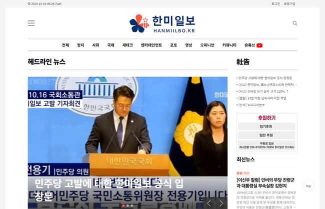 입장문은 "정당이 언론을 고발로 제압하려는 사회는 더 이상 자유가 아니라 공포의 언어로 통치되는 사회"라며 "한미일보는 권력의 불편함을 기록하는 언론으로서, 국민이 알아야 할 사실을 취재하고 보도할 책임을 다할 것"이라고 밝혔다.
