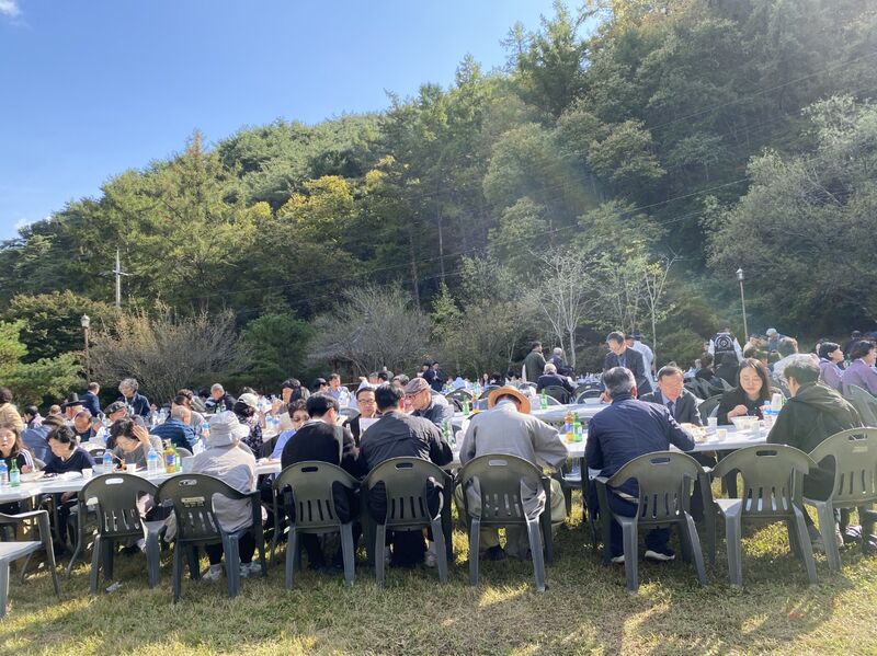 길사 참석자들이 퇴계기념공원에서 음복을 하고 있다.
