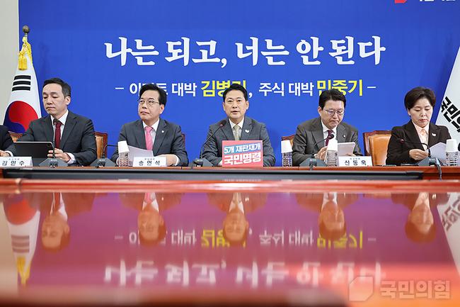 이어 민중기 특검을 둘러싼 논란에도 강도 높은 비판을 이어갔다. 장 대표는 “민중기 특검은 미공개 정보로 억대의 시세차익을 챙겼다는 의혹, 강압 수사로 한 공무원을 죽음으로 내몰았다는 의혹의 중심에 있다”며 “스스로를 단죄하지 못하는 특검은 ‘법복 입은 도적’이 되어 국민을 분노케 하고 있다”고 주장했다. 그는 “특검팀 인원을 교체한다고 해서 진실이 바뀌지 않는다”며 “국민의힘은 민중기 특검의 불의와 위선에 끝까지 책임을 묻겠다”고 했다.
