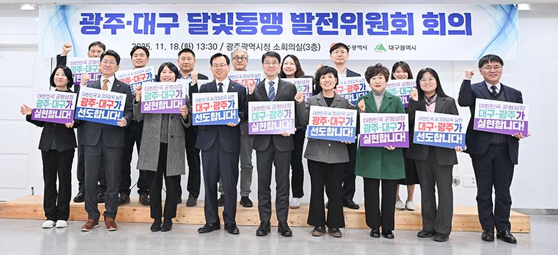 대구광역시와 광주광역시가  18일 시청 3층 소회의실에서 ‘광주·대구 달빛동맹 발전위원회’를 열어 두 도시 간 실질적인 협력 강화 방안을 논의했다.