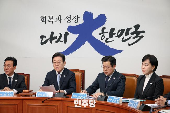 이재명 대표가 2025.02.19.(수) 국회 당대표회의실에서 열린 최고위원회의에 참석하여 발언하고 있다.