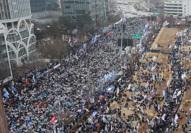 ▲1일 오후 5시경 서울 종로구 안국동 사거리에서 야 5당 공동 내란종식·민주헌정수호를 위한 윤석열 파면 촉구 범국민대회.(사진=연합뉴스)