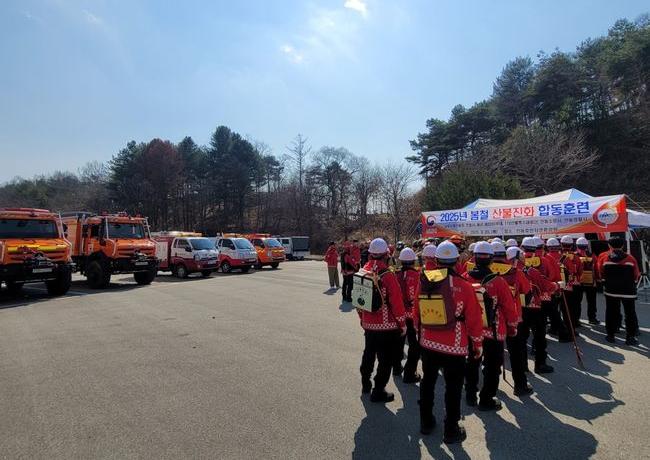 이번 합동 훈련은 입산자의 실화로 인해 산불이 발생한 상황을 가정하여, 초기 산불상황 접수 및 전파부터 유관기관 간 협업을 통한 신속한 현장 진화 대응까지의 전 과정을 실전처럼 연출해 진행됐다.