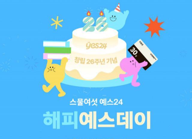 문화콘텐츠 플랫폼 예스24가 창립 26주년을 기념해 ‘스물여섯 예스24, 해피예스데이’ 이벤트를 실시한다.