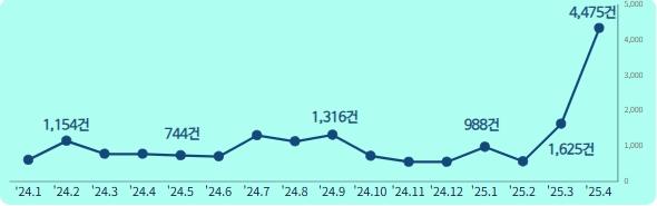`24.1.1. ~ `25.4.27. 땅꺼짐(싱크홀) 관련 민원 발생량은 총 18,067건