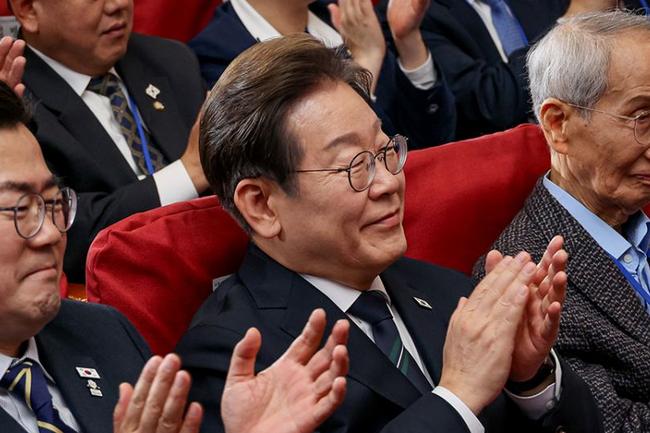 이재명 제21대 대통령선거 후보자가 2025.04.30.(수) 국회 의원회관 대회의실에서 열린 제21대 대통령선거 선거대책위원회 출범식에 참석하여 박수를 치고 있다.