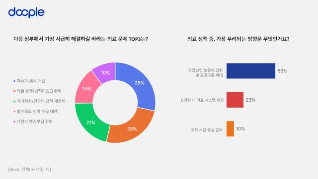 5만4000여 명의 개원의 중심의 의사 커뮤니티 ‘닥플(docple.com)’을 운영하는 이노케어플러스는 지난 5월 14일부터 20일까지 의료 정책 관련 설문조사 ‘닥플 오피니언’을 진행했다고 밝혔다.