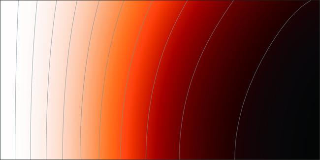 <양자거리 측정 실험 데이터> 흑린 속 전자들의 양자거리 분포를 에너지와 운동량에 따라 측정한 실험 데이터로, 흰색은 양자거리가 0이고 검은색은 양자거리가 1이다. 회색 선들은 양자거리가 같은 지점을 0.1 간격으로 이어서 나타낸 것이다. 그림설명 및 그림제공 : 연세대학교 김근수 교수