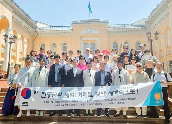 ▲지난 6월 30일 카자흐스탄 고려극장에서 ‘2025 겨레얼 찾아 세계속으로' 행사 후 참석자들과 기념촬영.