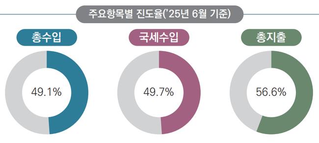 2025년 상반기 재정수지가 전년보다 개선됐지만 여전히 90조원 넘는 적자를 기록했다.