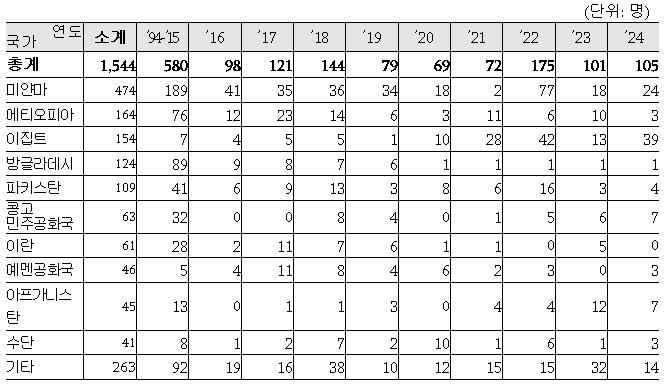 30년 누적 난민신청 12만건 돌파…러시아 국적 1위