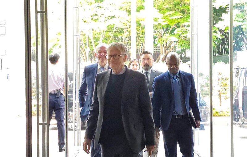 빌 게이츠 게이츠재단 이사장(가운데)이 22일 이재용 삼성전자 회장과 오찬 미팅을 하기 위해 삼성전자 서초 사옥에 들어서고 있다.
