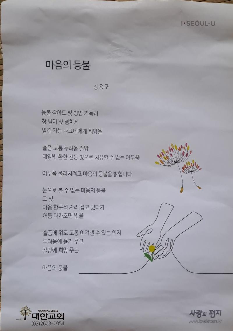 시 항아리에서 꺼낸 김용구 시인의 '마음의 등불'.
