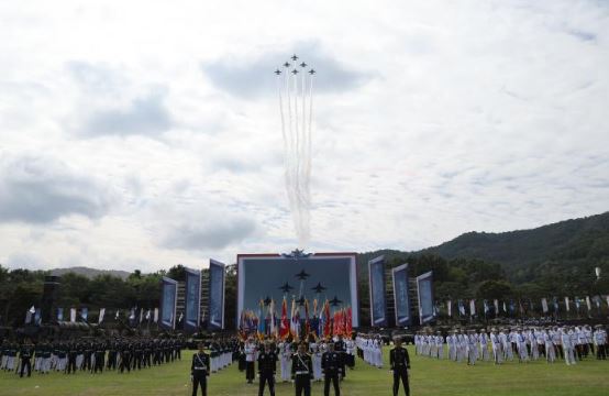 공군 특수비행팀 블랙이글스가 행사장 상공을 비행하고 있다.