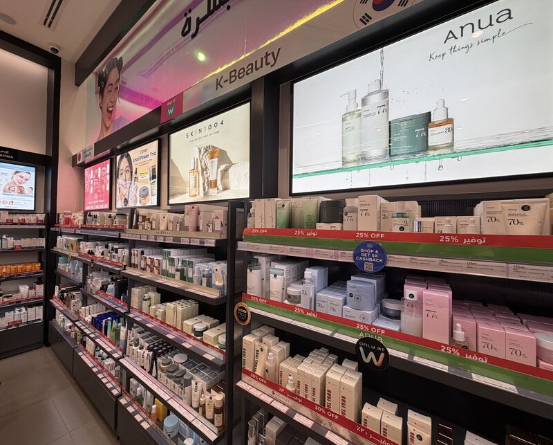 중동 아랍에미리트 두바이에 있는 대형 쇼핑몰 시티 센터 미르디프(City Centre Mirdif) 왓슨스 매장 내 K-뷰티 모습.