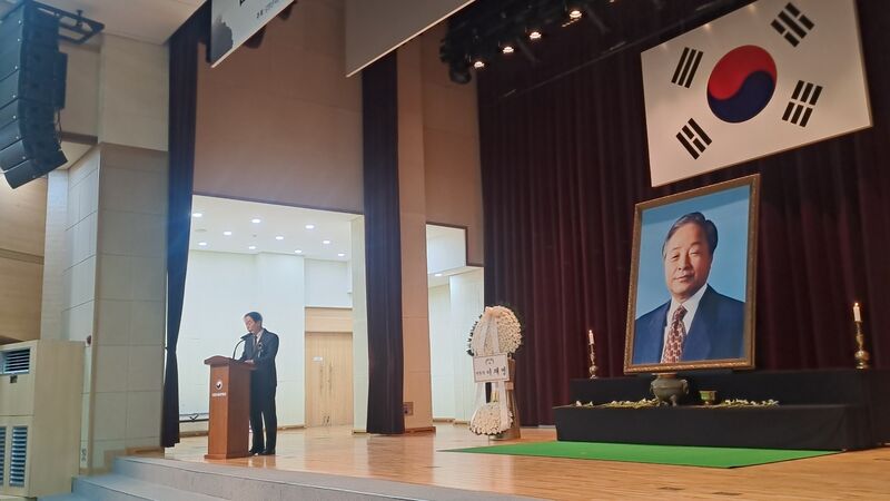 김현철 김영삼대통령기념재단 이사장이 유족 대표로 인사말을 하고 있다.