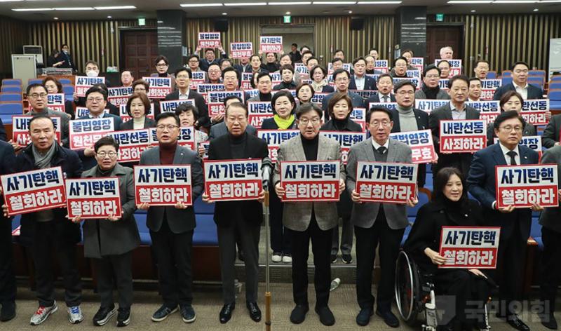 이어 “국민의힘은 108명 의원 전원이 즉각 의원직을 사퇴하라”며 “그렇게 하여 헌법적 공백을 만들어 냄으로써 망국적인 22대 국회가 스스로 해산하는 길을 가게 하라”고 촉구했다.