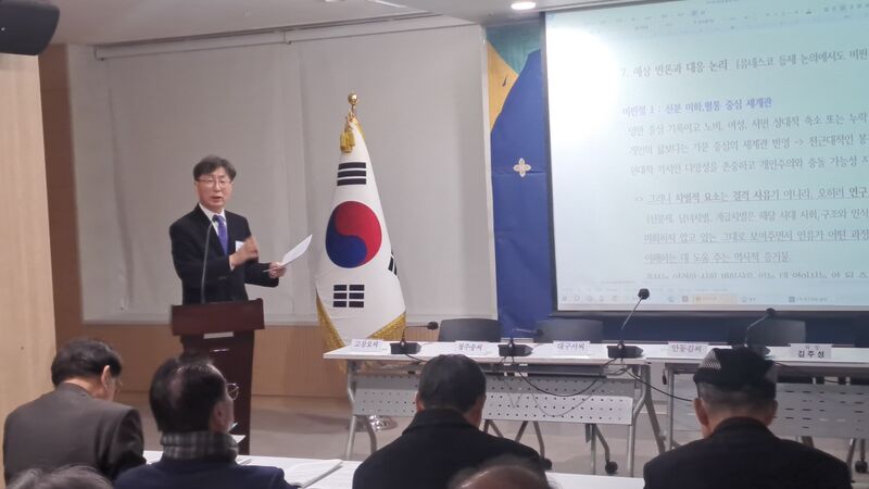 정호성 한국 족보 유네스코세계기록유산 등재 추진위원회 상임집행위원장이 강연을 하고 있다.