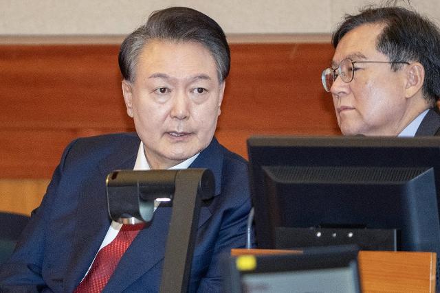 ▲윤석열 대통령이 지난 20일 서울 종로구 헌법재판소에서 열린 윤 대통령 탄핵 심판 10차 변론에 출석해 있다.